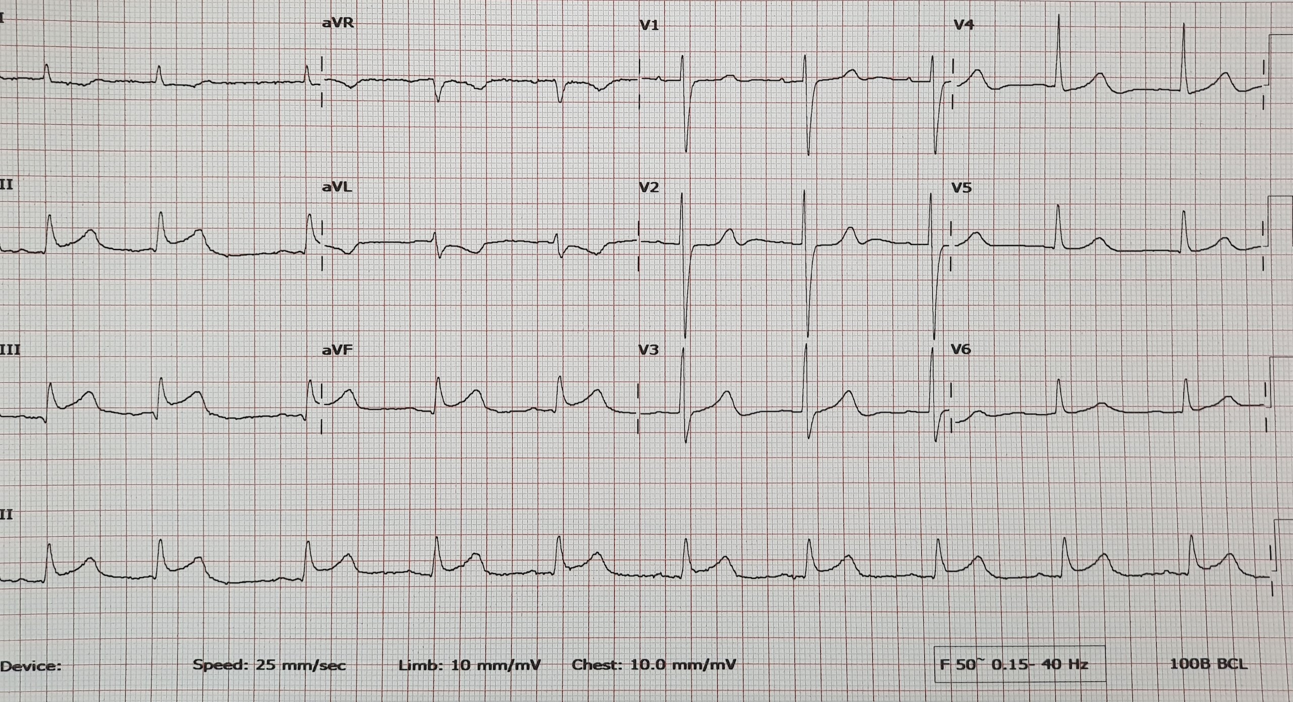 The resting ECG may be normal between attacks however it may show old myocardial infarction, heart block, or left ventricular